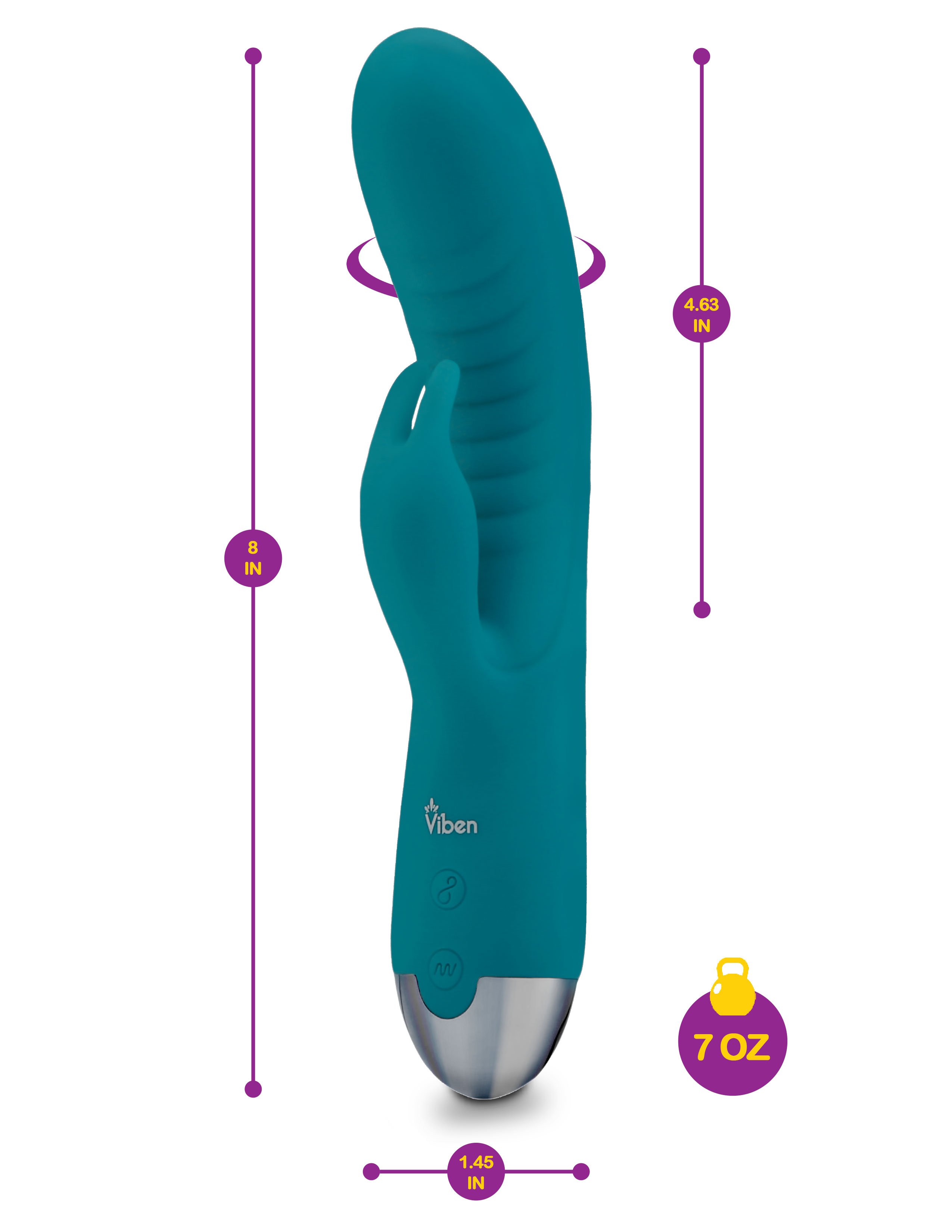 Dual stimulation G-Spot rabbit vibe with "come hither" motion that moves and flows in smooth waves. Featuring soft, flexible rabbit ears & pleasure ridges for heightened sensations. Easy to use push-button control, allowing for independent command of the shaft and the external clit stimulator. Just hold the button for 2 seconds.